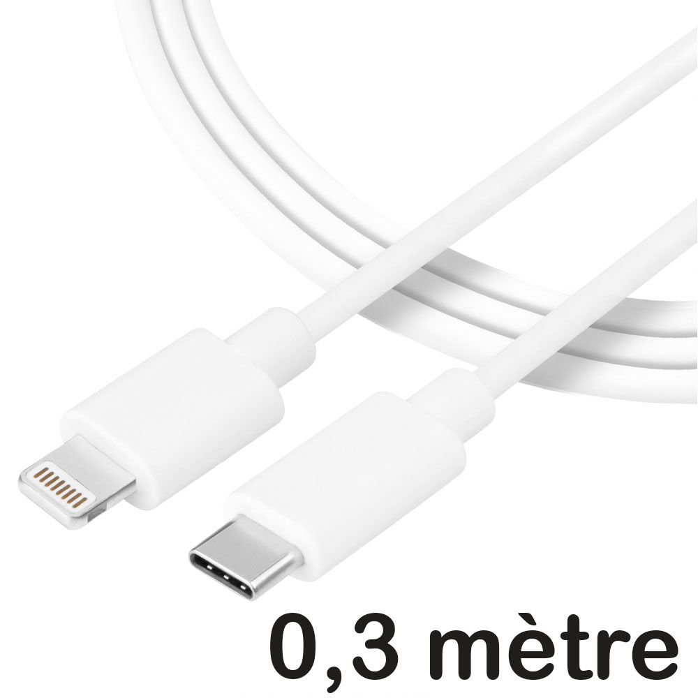 Cable USB-C vers Lightning pour Apple iPhone de 30 cm blanc