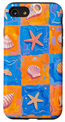 Esthétique Summer Coastal Preppy sur Orange et Bleu Coque pour iPhone SE (2020) / 7/8