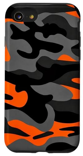 Retro Hunter Safety Orange Camo Vintage Noir Camouflage Coque pour iPhone SE (2020) / 7/8
