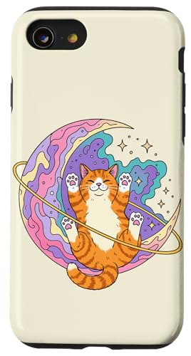 Chat tigré Orange Galactique Flottant sur Une Lune Mystique Coque pour iPhone SE (2020) / 7/8