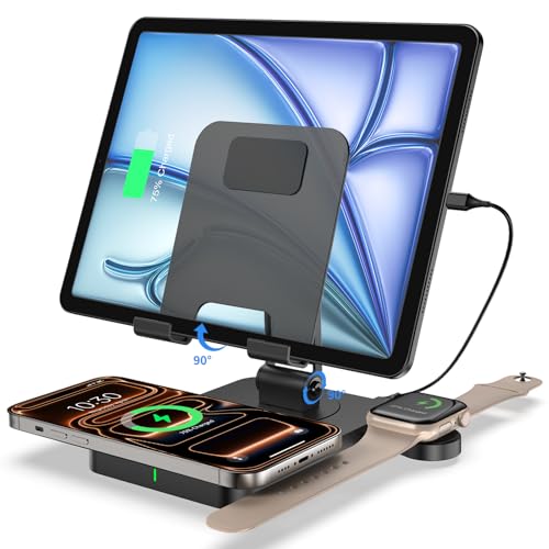 Chargeur sans Fil pour Apple, Station de Recharge sans Fil pour iPhone 16/15/14/13/12/11, Chargeur pour Apple Watch 10/9/8/7/6/SE/5/4/3, Chargeur pour Air Pods 4, Support pour iPad Pro/Mini/Air