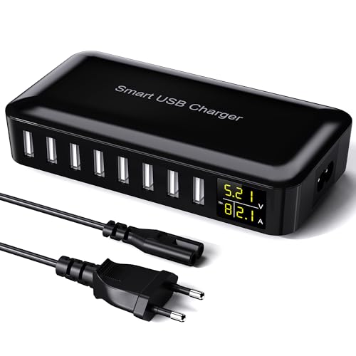 Rsydmny Chargeur USB, 8 ports, station de charge 40 W, écran LED, plusieurs appareils, compatible avec iPhone, Samsung, Google, Huawei, etc.