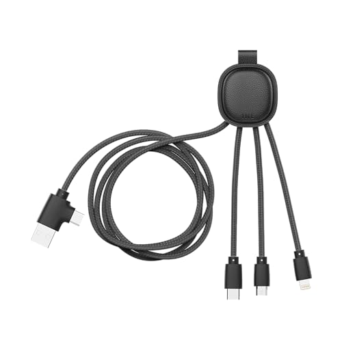 Xoopar Ine Smart Fonction NFC - Noir en Cuir Recyclé - Câble Multi USB 4 en1 USB-C,USB,Lightning,Micro USB -Chargeur Universel pour Iphone, Samsung,Huawei,Xiaomi,Wiko,Tablette