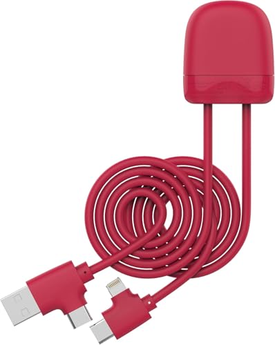 Xoopar Câble Multi USB Mr Bio 4 en 1 - Câble USB Durable - Chargeur USB Universel pour Smartphone Apple iPhone Samsung Google Huawey Xiaomi OnePlus LG Kindle (Rouge)