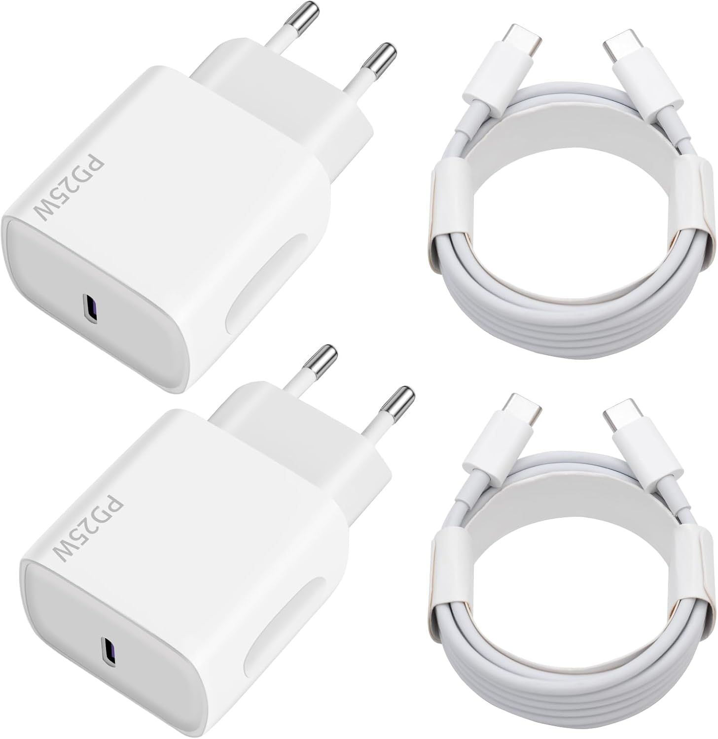 TRAHOO-Chargeur USB C 25W, 2-Pack Prise USB C Chargeur Rapide avec 2x2m Câble USBC Rapide pour Samsung Galaxy iPhone Max Mini SE X XS XR iPad Huawei Xiaomi,Prise USBC