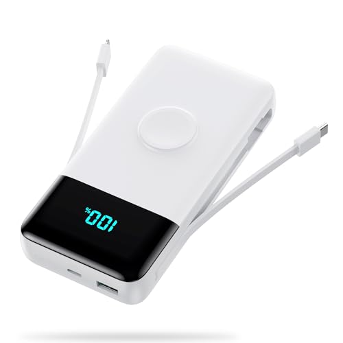 Batterie Externe 26800mAh, 25W PD+QC4.0 USB C Power Bank 2 Câbles Intégrés Charge Rapide Chargeur Batterie Portable 5 Sorties Compatible avec Apple Watch, iPhone, Samsung Galaxy Huawei Tablette