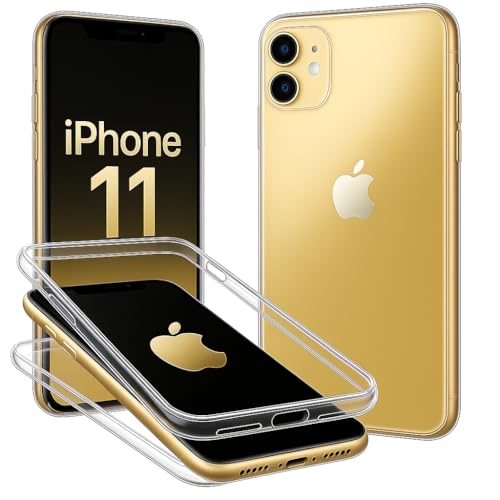 A ANCILE Coque pour iPhone 11 360° Transparente intégrale Double Protection Avant arrière en Silicone TPU Antichoc – Dimensions : 150 x 75,7 x 8,3 mm
