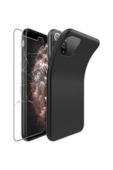 - Coque iPhone 11 Pro Housse Etui Gel Motif Fibre Carbone Luxe TPU Premium, Noir & Film en VERRE Trempé [Dimensions PRECISES Smartphone : 144 x 71.4
