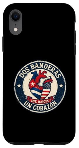 Dos Banderas Un Corazon, héritage hispanique, fierté Latino-américaine, cubaine Coque pour iPhone XR
