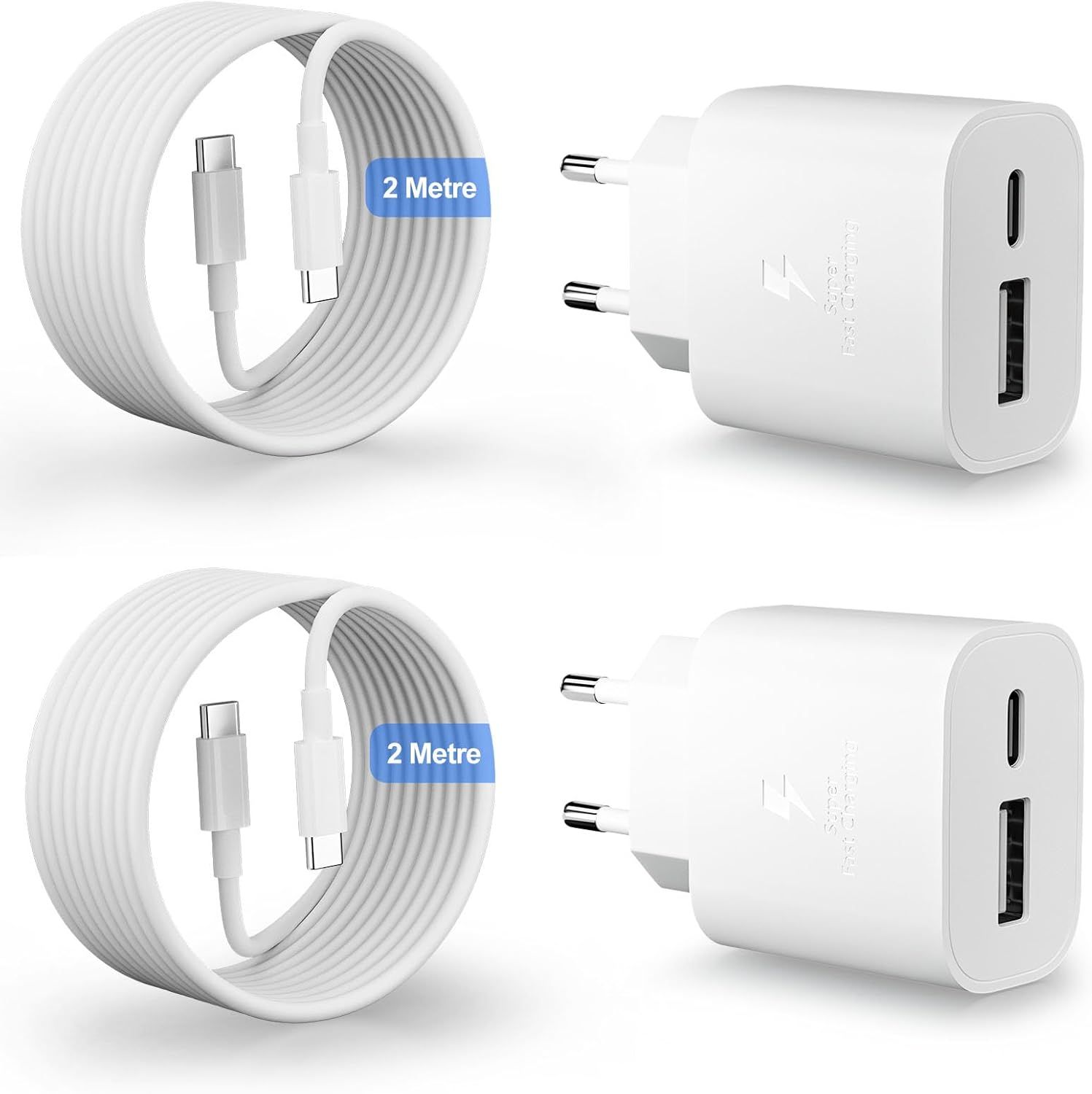 Lot De 2 Chargeur Usb C Rapide Pour Apple Iphone 16/16E/16 Pro/16 Pro Max/16 Plus/15/15 Pro/15 Promax/15 Plus/Ipad Pro/Air, 25W 2 Port Prise Usbc En Usb A Adaptateur Secteur Avec Câble Type [Z1477]