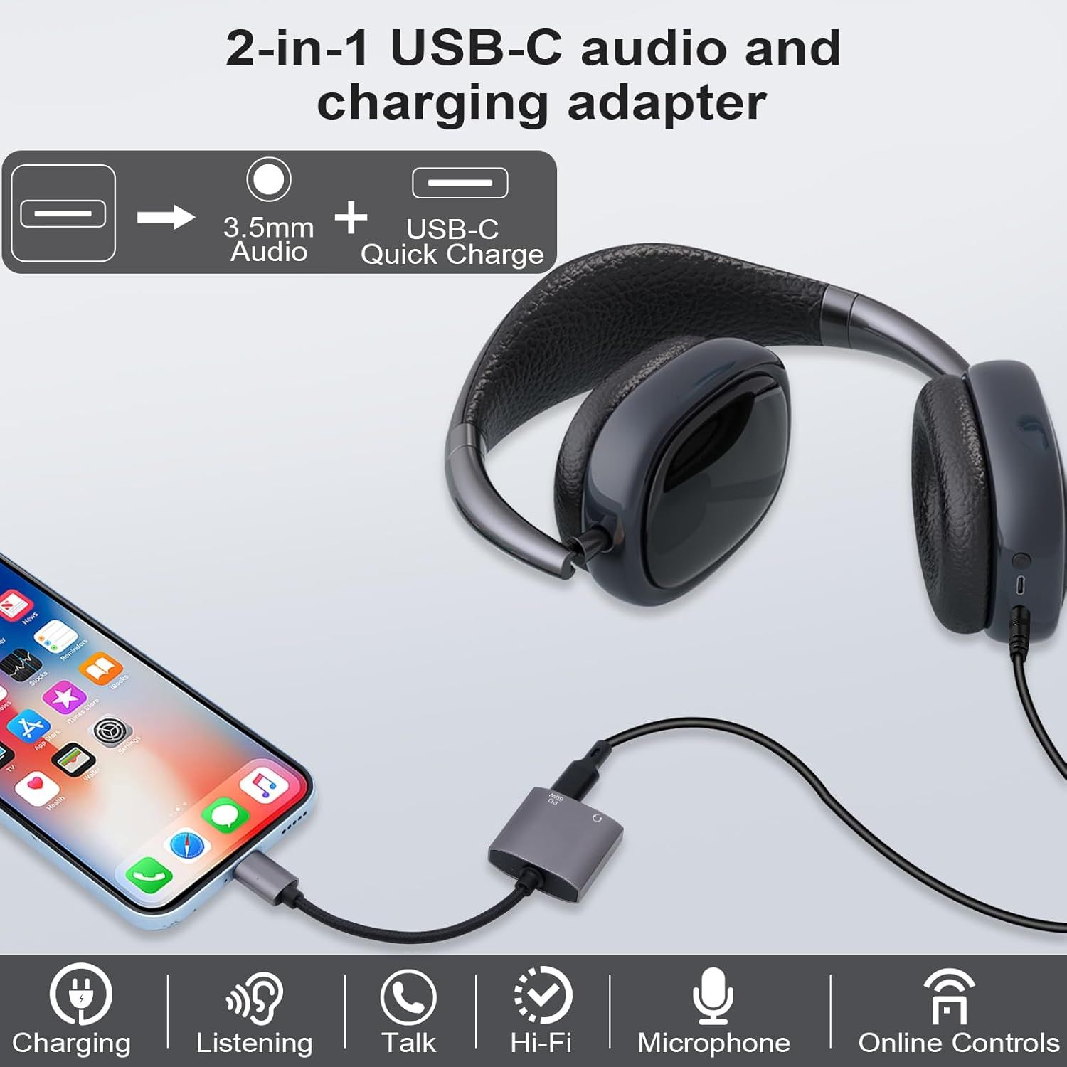 Subzonal-Adaptateur Usb C Jack 3.5mm Avec Charge Rapide Pd 60 W, Usb C Jack Avec Dac, Prise Type C Vers Aux 2 En 1 Pour Iphone 16/15 Pro/Max, Samsung Galaxy,Ipad,Xiaomi, Huawei,Macbook, Ipad Pro