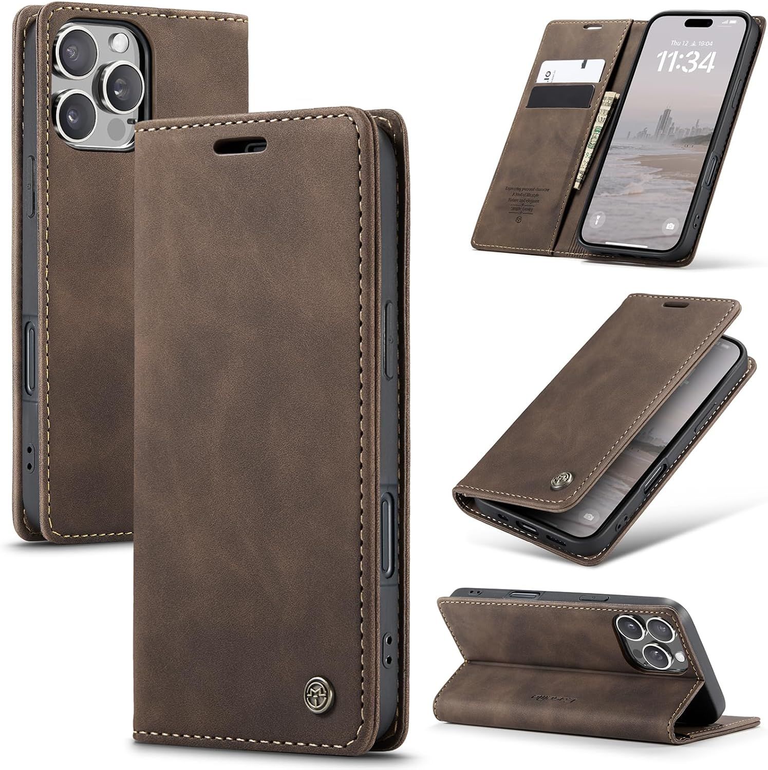 Iphone 16 Promax 5g Case, Premium Leather Flip Case Cover With Card Slot And Stand Function For Iphone 16 Promax 5g - Coffee