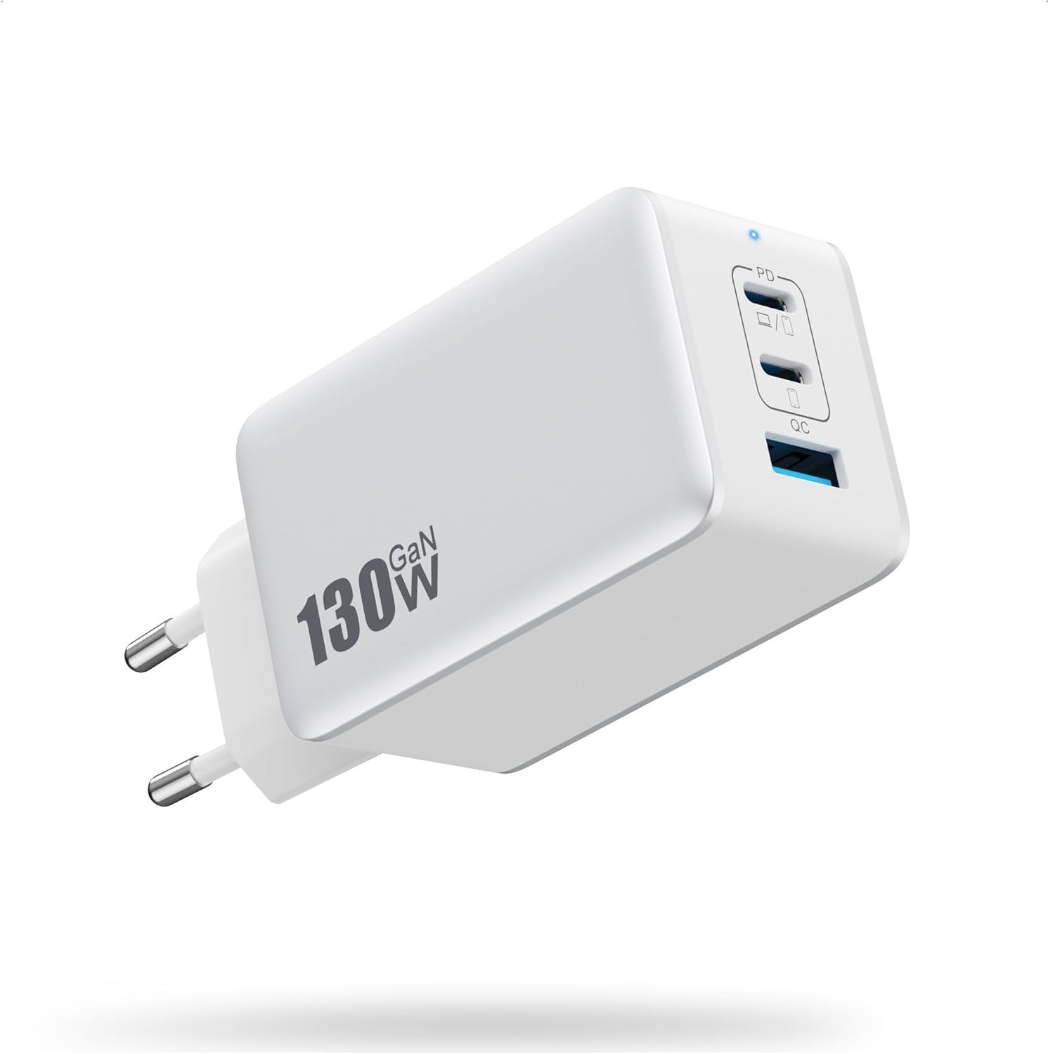 130W Chargeur Usb C,3-Port Pd Qc Pps Chargeur Rapide Prise Usb Avec Gan Iv Tech,Compact 65W Chargeur Laptop Pourmacbook Pro Air/Ipad/Iphone 16 15 14 13 12 11 Promax/Samsung Galaxy S24/Huawei-Blanc