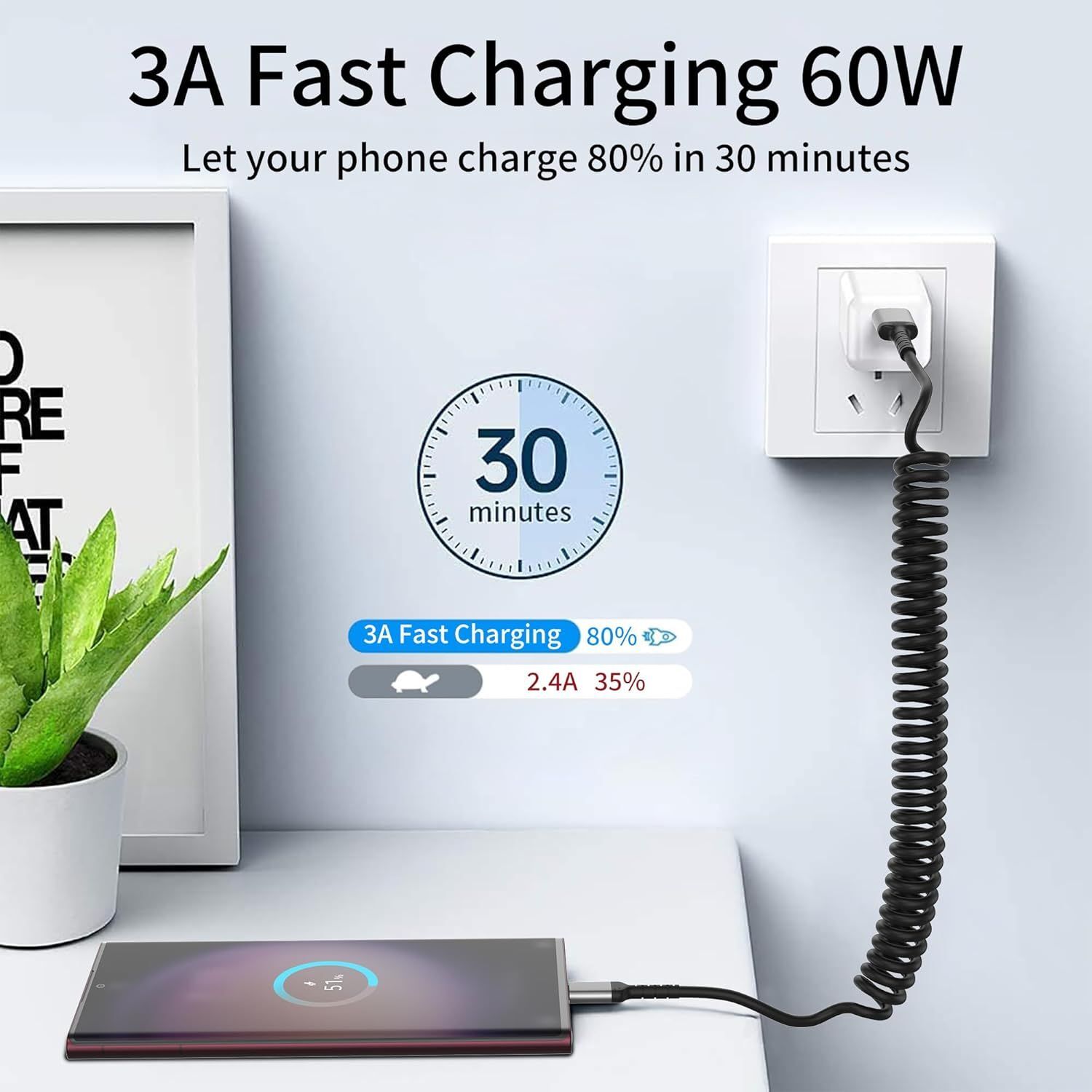 Lot De 2 Câbles Spiralés Usb C - 0,3 M - 1 M - Câble Usb A Vers Usb C Court - Câble De Charge Rapide Usb C - Pour Iphone 16/15/Plus/Promax, Galaxy S24 Ultra S23 Fe S22 S21, Google Pixel,