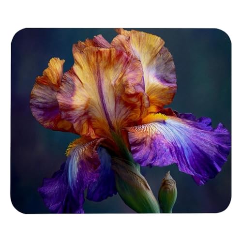 Tapis de Souris Gaming - 320 x 260 mm - Petit Mouse Pad Iris Fleurs - Surface Spéciale Améliore la Vitesse et la Précision - Base en Caoutchouc Antidérapant Surface - Portable et Lavable j-973