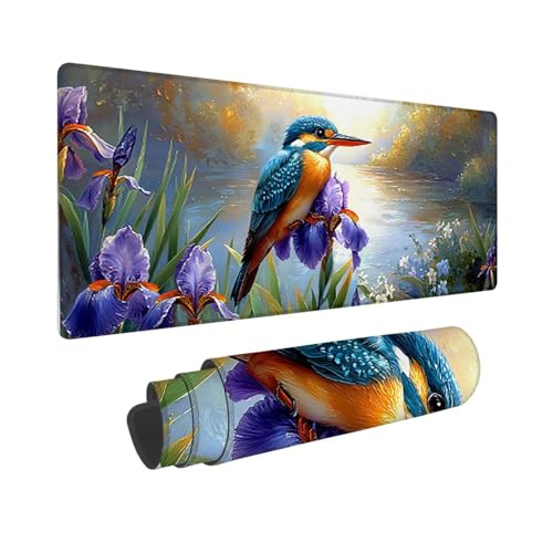 Tapis de Souris de Jeu, 600 x 300 mm XXL Tapis Souris Gaming Grand, Antidérapant Étanche, iExtended Long Clavier Mouse Pad XXL, Accessoire Bureau, pour Gamer, Ordinateur, PC (Iris Oiseaux) i-902