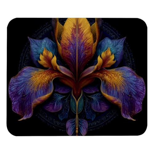 Tapis de Souris Gaming - 300 x 250 mm - Petit Mouse Pad Iris Fleurs - Surface Spéciale Améliore la Vitesse et la Précision - Base en Caoutchouc Antidérapant Surface - Portable et Lavable j-972