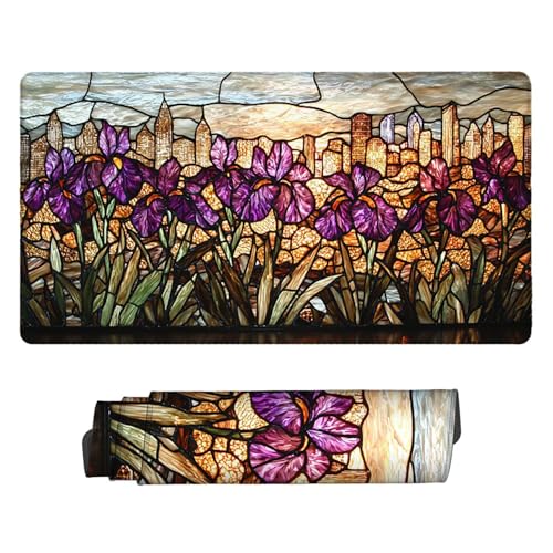 Tapis de Souris de Jeu, 600 x 300 mm XXL Tapis Souris Gaming Grand, Antidérapant Étanche, iExtended Long Clavier Mouse Pad XXL, Accessoire Bureau, pour Gamer, Ordinateur, PC (Iris Fleurs) i-900