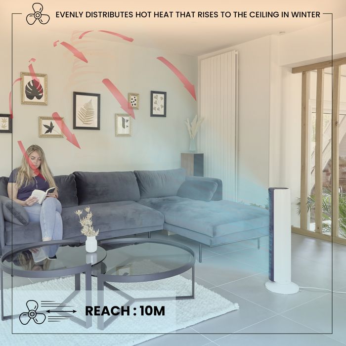Iris Ohyama Ventilateur colonne silencieux puissant & portable Portée 10m TWF-C82T Blanc