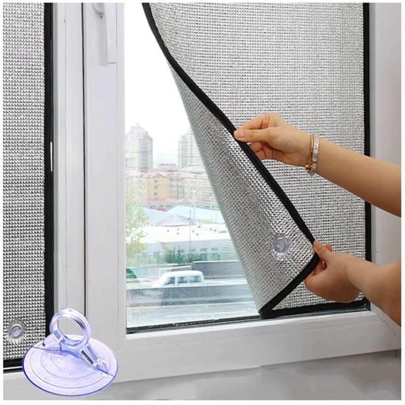 XUNFAKE Film Thermique pour Fenêtre, Film Isolant en Aluminium, Panneau Isolant, Protection des Regards Indiscrets,Film Occultant avec Ventouse, pour Fenêtres Et Portes en Verre