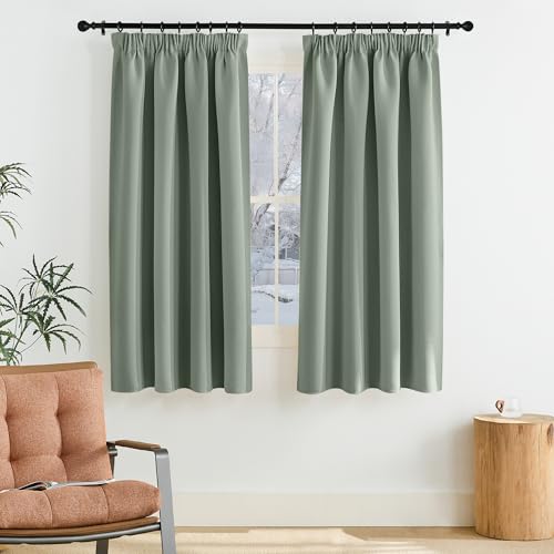 PONY DANCE Lot de 2 Rideaux Occultant Galon Fronceur et Passe Tringle, Rideau Vert Opaque 140x145cm(LxH), Thermique Isolant Decoration pour Fenetre Chambre Cuisine, Sauge Vert