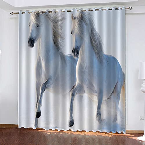 ODSGEK 2 Pièce Rideaux Occultants Cheval Animal 3D Impression Isolant Thermique Opaque Fenetre Curtain avec Oeillet Rideau Occultant pour Décoration Chambre Coucher du Salon 140x160cm