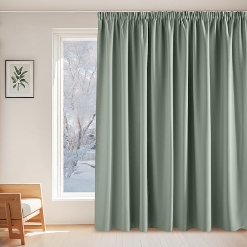 PONY DANCE Rideau Grande Largeur 300x260cm (LxH), Rideaux Occultant Galon Fronceur et Passe Tringle, Thermique Isolant Decoration pour Fenetre Chambre Salon, Sauge Vert, 1 PC