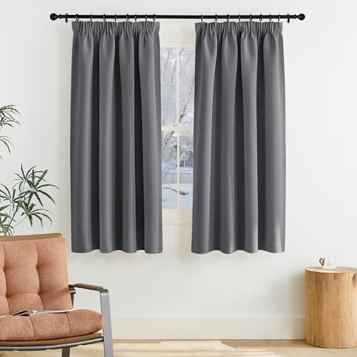 PONY DANCE Lot de 2 Rideaux Occultant Galon Fronceur et Passe Tringle, Rideau Opaque 2x140x145cm(LxH), Thermique Isolant Decoration pour Fenetre Chambre Cuisine, Gris