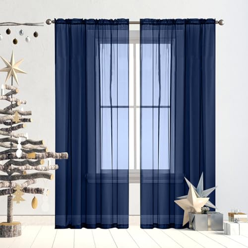 GAIFNAG Rideaux Voilages à Oeillets pour Fenêtre 80 x 160 cm Isolation Lumiere Anti UV Decoration Voilage à Oeillets, Lin Rideau Thermique Isolant pour Porte Fenetre Dressing Salon, Bleu Foncé