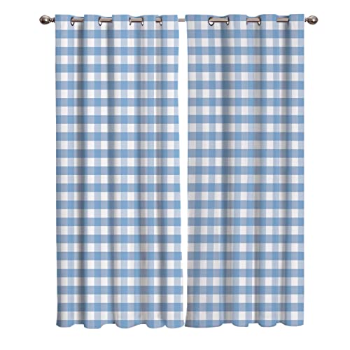 BOONGA Rayure à Carreaux Bleu Blanc Rideaux Occultants Thermique Anti Froid Isolant, Rétro Rideau Fenetre avec Oeillets, Blackout Window Curtains pour Salon et Chambre 132 x 160 cm, 2 Pièces