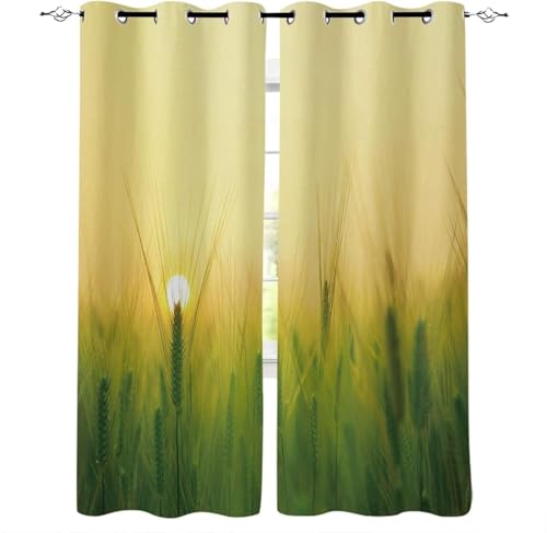 Aozhiswe Lot de 2 Rideau épis de Blé Rideaux Occultants 117x230 cm Plantes Agricoles Imprimé 3D Draperies Ntérieurs Rideaux de Fenetre Isolant Thermique Décoration Rideaux pour Chambre Salon a.587