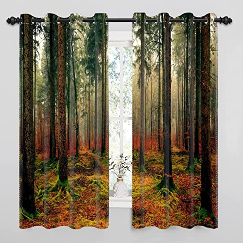 FIBITA Lot de 2 Rideau Forêt Rideaux Occultants 110x215 cm Automne Imprimé 3D Draperies Ntérieurs Rideaux de Fenetre Isolant Thermique Décoration Rideaux pour Chambre Salon