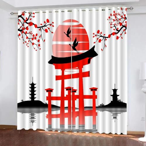 Aozhiswe Lot de 2 Rideau Style Japonais Rideaux Occultants 140x245 cm Style Japonais Imprimé 3D Draperies Ntérieurs Rideaux de Fenetre Isolant Thermique Décoration Rideaux pour Chambre Salon a4560