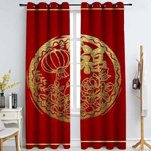 Aozhiswe Lot de 2 Rideau Chinois Rouge Rideaux Occultants 140x245 cm Style Asiatique Imprimé 3D Draperies Ntérieurs Rideaux de Fenetre Isolant Thermique Décoration Rideaux pour Chambre Salon a.2109