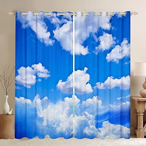 FIBITA Lot de 2 Rideau Nuage Rideaux Occultants 110x215 cm Ciel Bleu Imprimé 3D Draperies Ntérieurs Rideaux de Fenetre Isolant Thermique Décoration Rideaux pour Chambre Salon