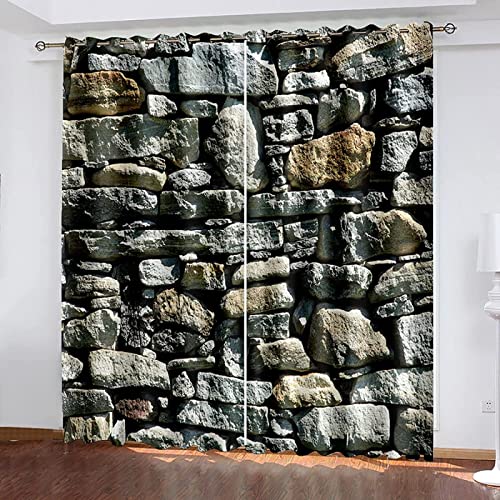 FIBITA Lot de 2 Rideau Mur de Pierre Rideaux Occultants 117x138 cm Style Campagnard Imprimé 3D Draperies Ntérieurs Rideaux de Fenetre Isolant Thermique Décoration Rideaux pour Chambre Salon