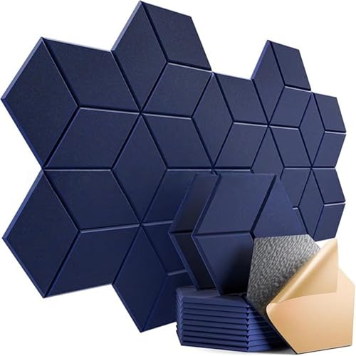 Hexagonal Isolant Phonique Mousse insonorisante autocollante for traitement acoustique haute densité pour décoration murale(Blue,12pcs Hexagon)