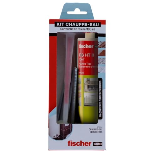 fischer - Kit de scellement pour chauffe-eau - 1 cartouche de 300 ml, 2 embouts mélangeurs, 4 tamis 16x130, 4 tiges filetées 10x160, 4 écrou nylon diam. M10