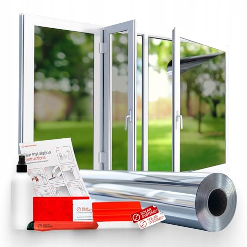 SOLAR SYSTEMS - Film de Protection Solaire pour Fenêtres - Anti Regard - Effet Miroir, Auto-Adhésif - Protection Thermique, Anti-UV, Film Isolant - 50x100cm
