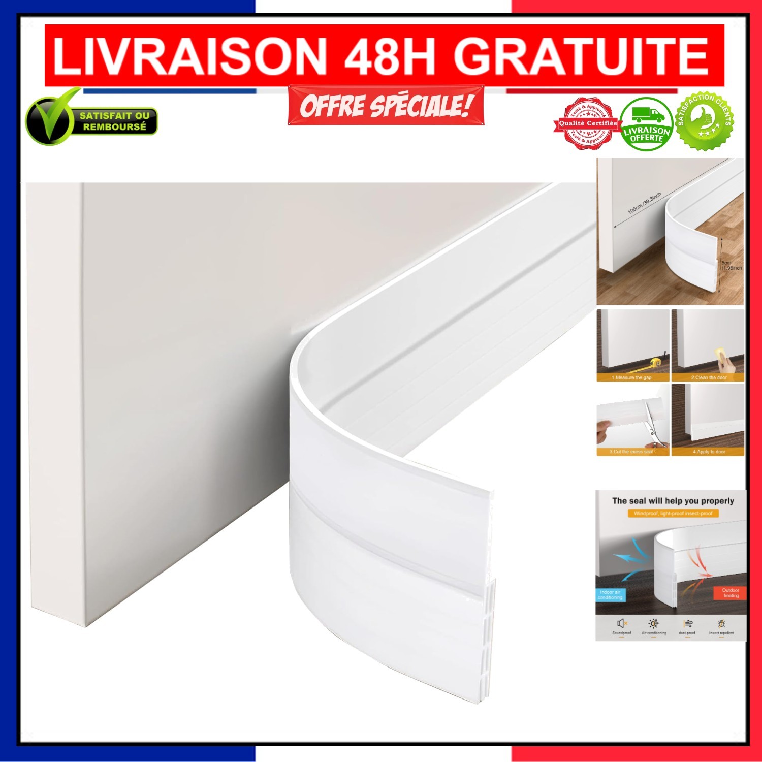 EXTSUD Bas de Porte Adhésif 100cmx5cm Lot de 2 Souple Silicone Isolant Phonique Thermique Blanc Bande d'étanchéité Anti Bruit Poussière Stop à l'air Froid Anti Souris Insectes