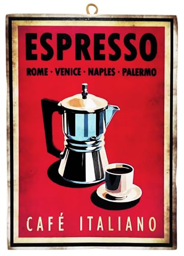 Kustom Art Calamita (aimant) Série Café, Café italien Vintage pour Réfrigérateur / Garage/Bar Impression sur bois 10 x 6 cm