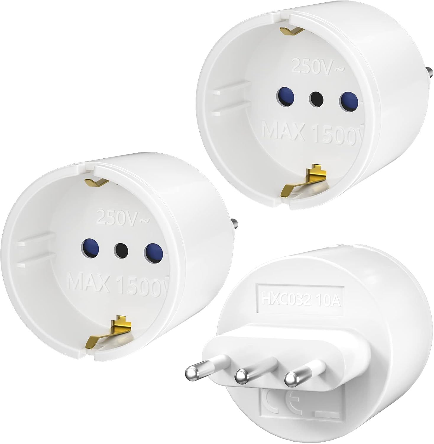 Hamiltion-Adaptateur De Voyage,Pack De 3 Adaptateur De Prise De Voyage De Vers It 2 Broches Europe Vers 3 Broches Italie Prise Type L Adaptateur Schuko Ue Vers Italie Chili,Blanc