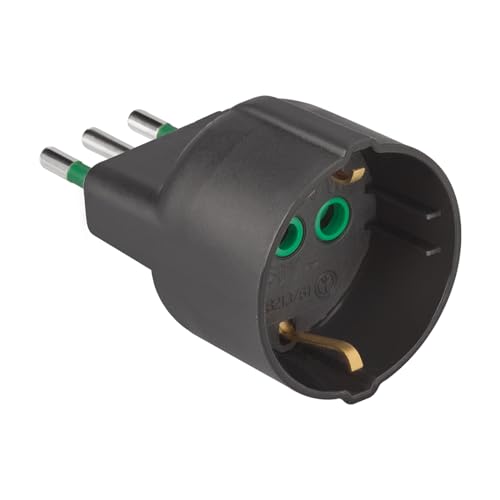 Ekon Adaptateur pour Prise Italo-Allemande, Prise Italienne 10A, Prise Italo-Allemande 16A, fabriqué en Italie, Noir