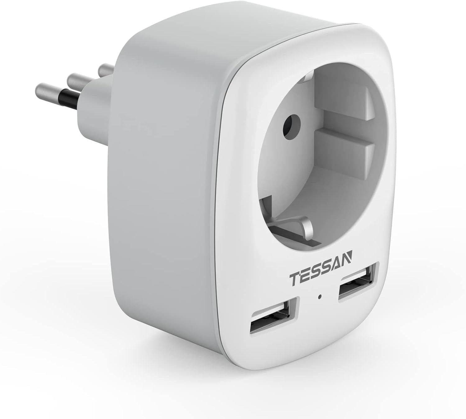 TESSAN Adaptateur Prise Italienne, Adaptateur Prise Italie vers France avec 1 USB C et 1 USB A, Type L, Adapter Italie Compatible avec Chili, Rome, Uruguay, Éthiopie, Florence, Venise, Milan