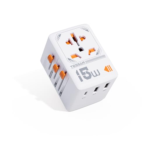 TESSAN Adaptateur Prise Universelle, Prise Internationale de Voyage avec 2 USB C et 2 USB A, Adaptateur Voyage Universel pour USA Anglaise Bresil Australie Canada Japon Italie Chine Suisse