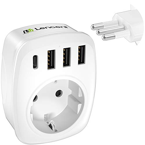 LENCENT Adaptateur Prise Italien Chargeur Voyage Italie avec 3 USB et 1 Type-C, Europe FR 2 Broches vers US 3 Broches pour Italie, Chili, Saint-Marin, Vatican, Uruguay, Syrie, Érythrée, Libye Type L