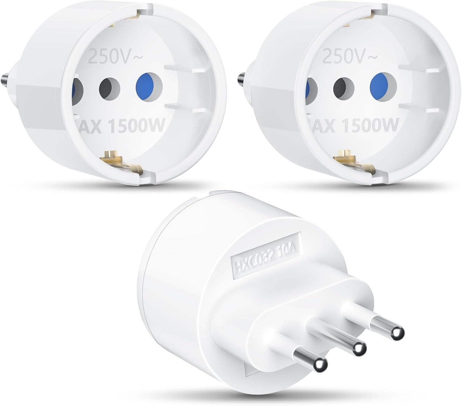 TLP-Adaptateur Prise Italie 3 pièces Adaptateur de Voyage Italie, Adaptateur de Prise Italie Prise de Voyage Adaptateur Italie Prise Adaptateur Italie Europe/Allemagne vers Prise de Voyage Italie