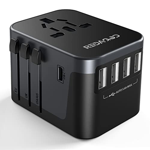 Redagod Adaptateur Voyage Tout-en-Un avec 4 USB 5.6A et 1 USB C 2023 Adaptateur de Prise Universelle Dépoli France vers Anglaise, USA, Japon, Canada Italie, Australie