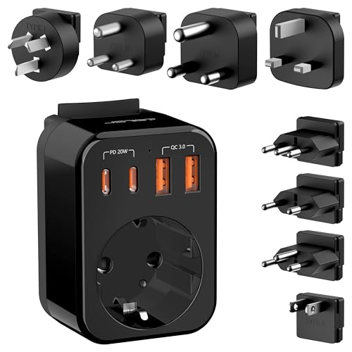 VOOMY Adaptateur Universel de Voyage pour 170+ Pays, International Prise Universelle avec 3 USB-A et 1 USB-C, Adapteur Voyage pour USA UK Australie Japon Italie Chine