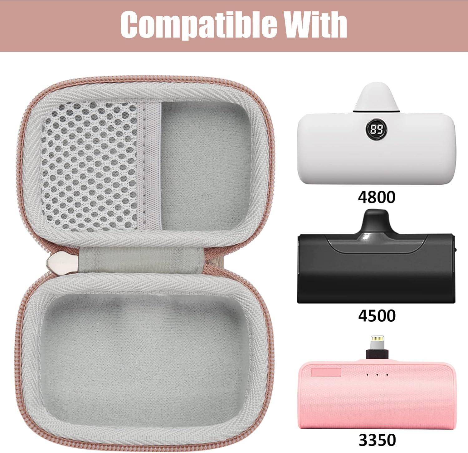 Housse Protection Compatible Avec Iwalk/Veger/Compact De 4800/4500/3350mah 5000mah Batterie Externe Chargeur Power Bank(Rose,Housse Only)
